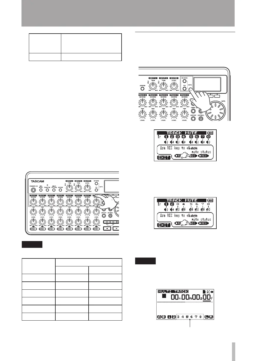 When mute is ON for a track, the track