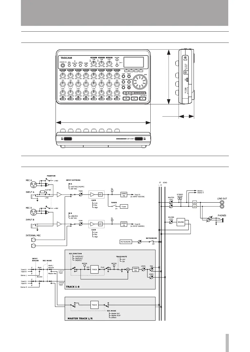 Tascam DP-008 - Dimensions; Block Diagram