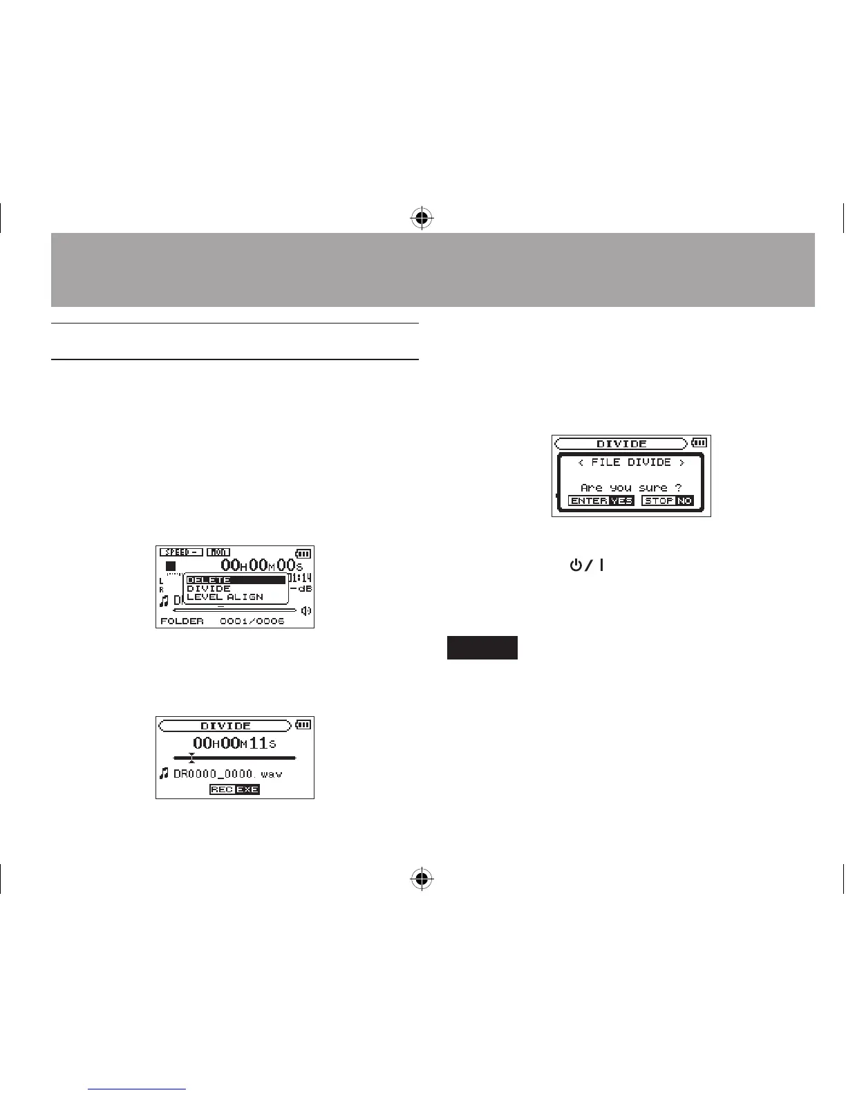 5 Press the Á button to divide the file.