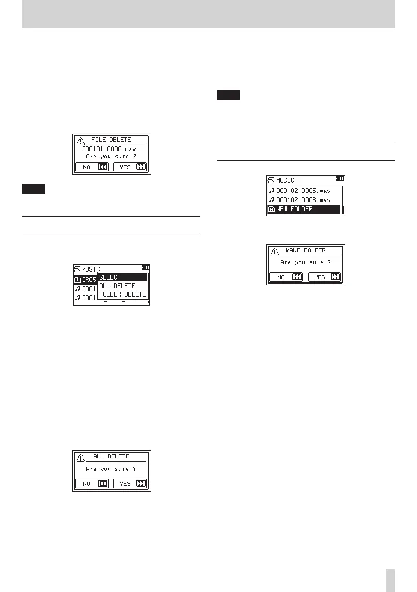 To delete the file, press the / button. To cancel deletion,