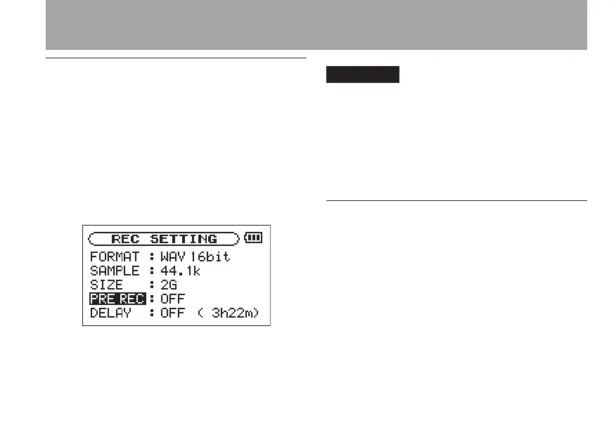 Use the following procedures to set pre-recording.