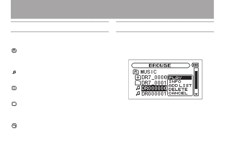 Icons on the BROWSE screen