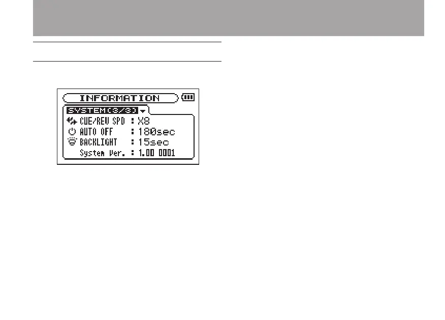 DR-07’s system settings and rmware version.