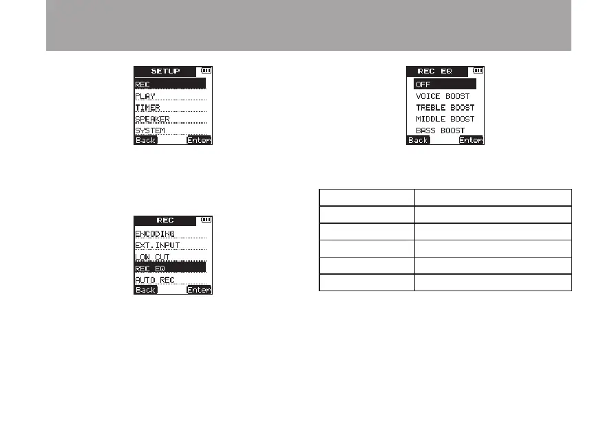 6 Use the +/– keys to select one of the following.