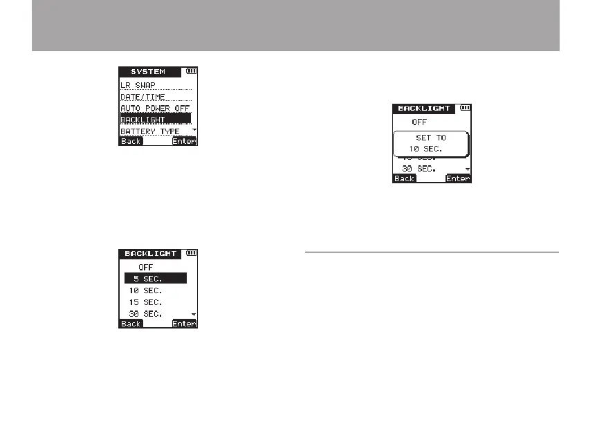 Options: OFF (backlight does not turn OFF),