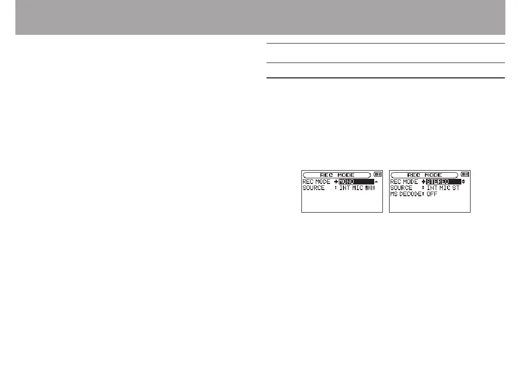 setting screen). Either two mono or two stereo recording