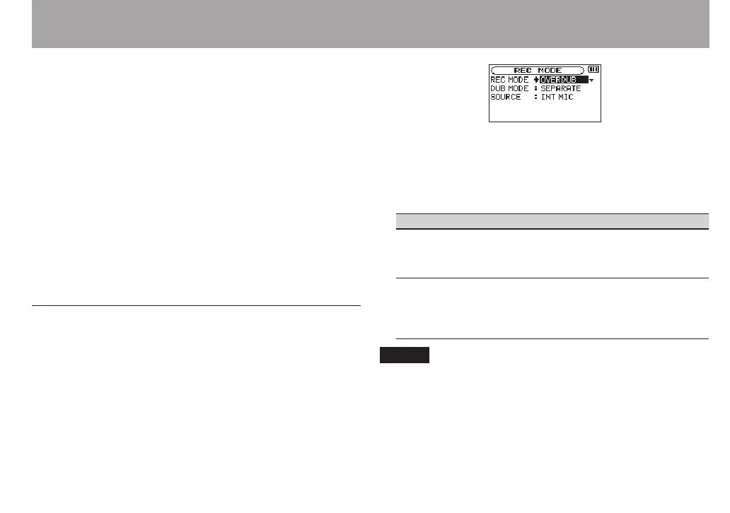 Setting the overdubbing mode