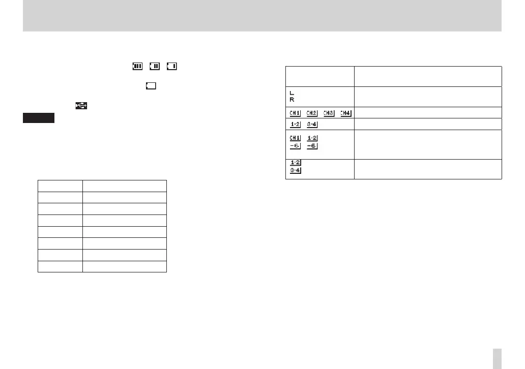 When a battery is being used, a battery icon shows the amount