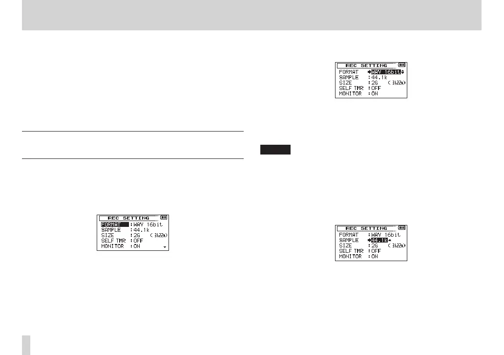 Selecting file format, sampling frequency,