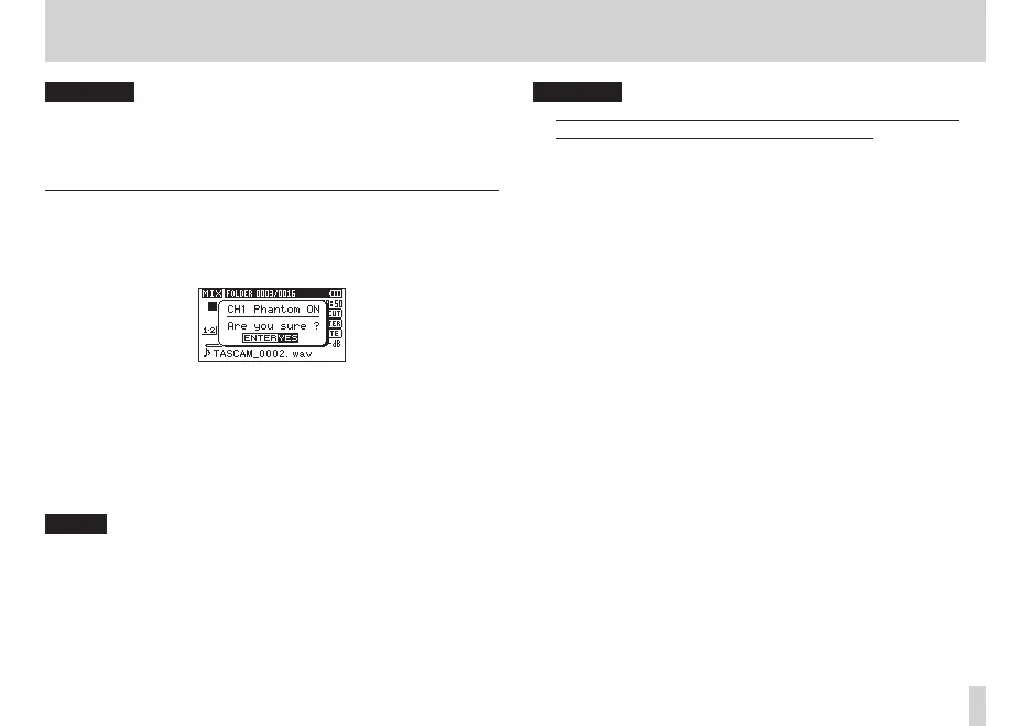 front of the unit to MIC+PHANTOM, a pop-up message appears