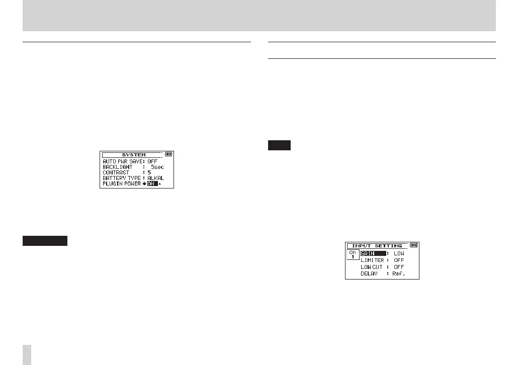 The plug-in power function can be turned on when an external mic