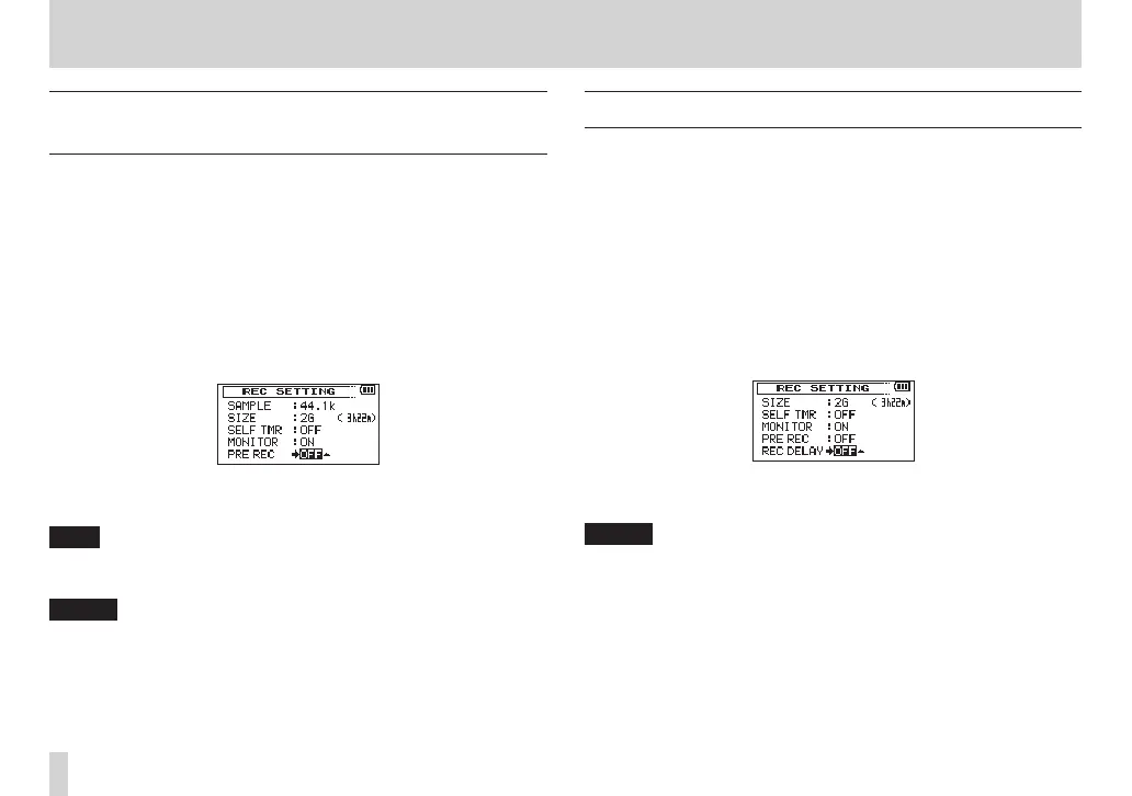 Delaying the start of recording (REC DELAY)