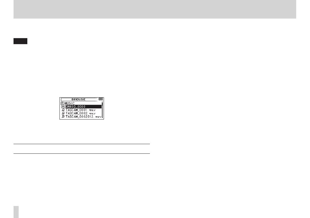 On the BROWSE Screen, folders and music files appear in a hierar-