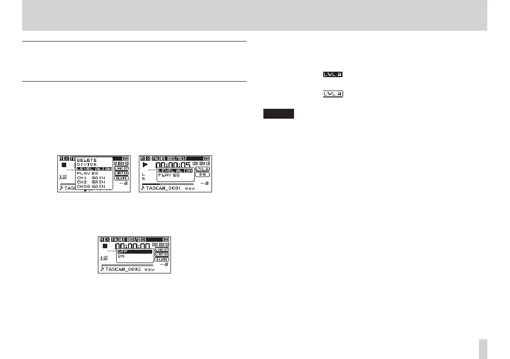 the level align function on or off.