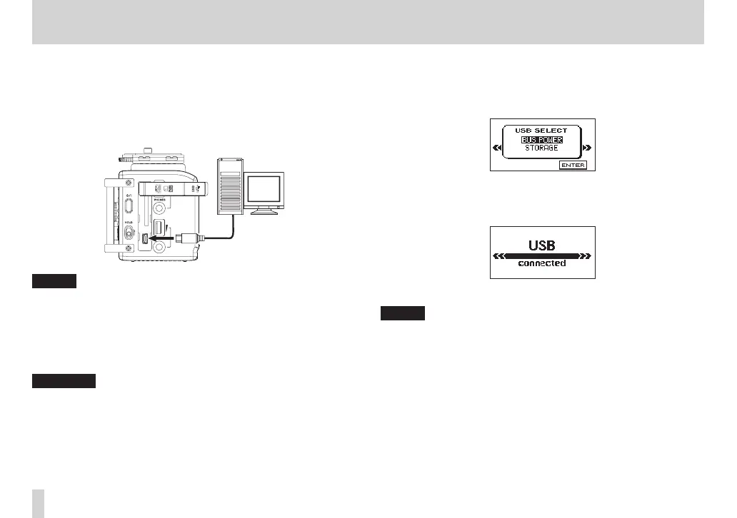 When the unit is connected through USB after being turned on, or