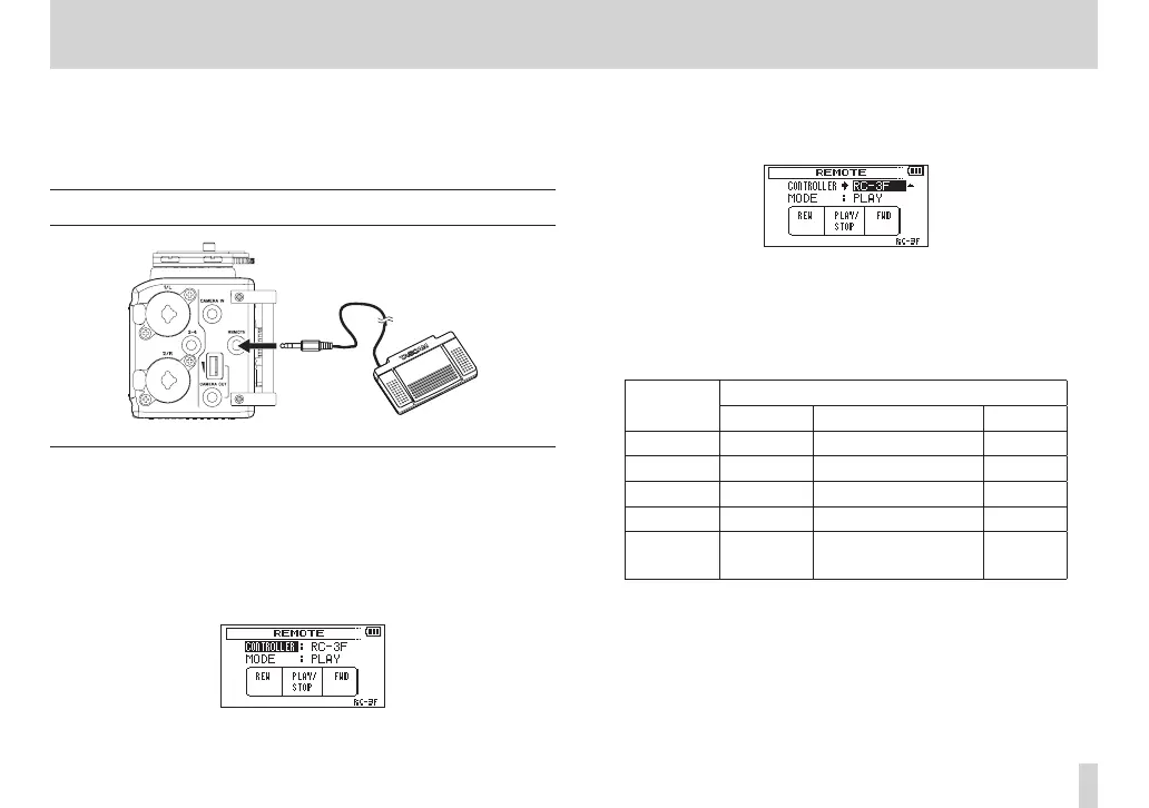 This unit has a REMOTE jack to which you can connect a TASCAM