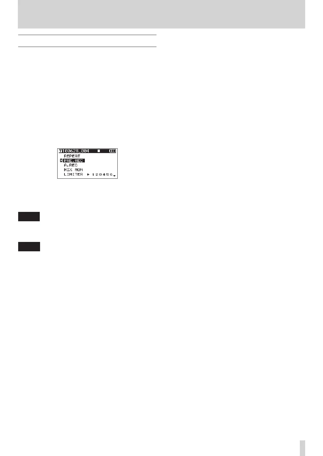 3 Press the VALUE knob to turn pre-recording ON
