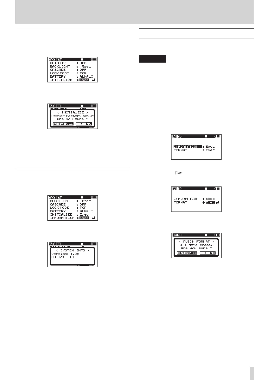 When formatting, use the AC adaptor or confirm