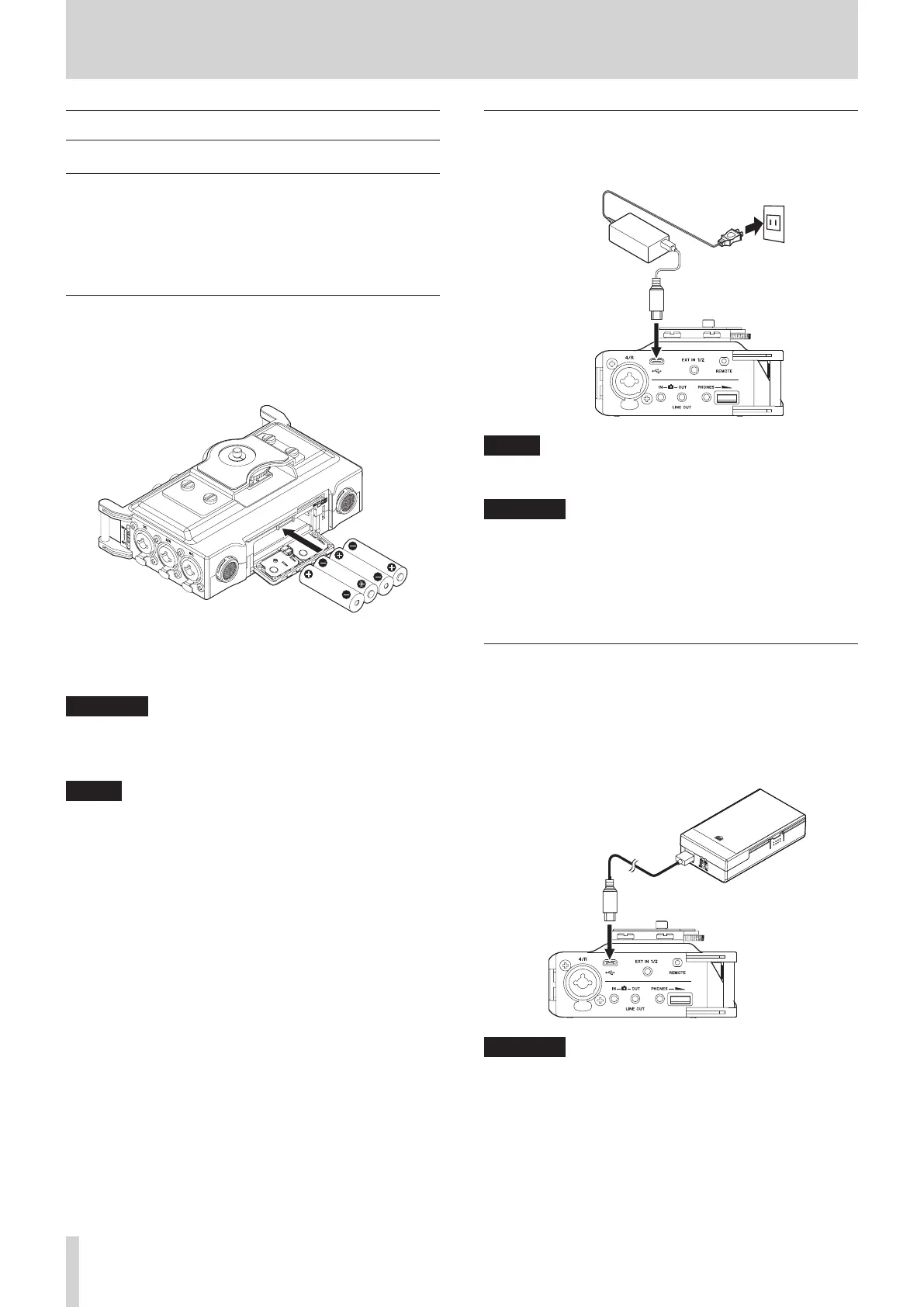 Connect a TASCAM BP-6AA external battery pack (designed for