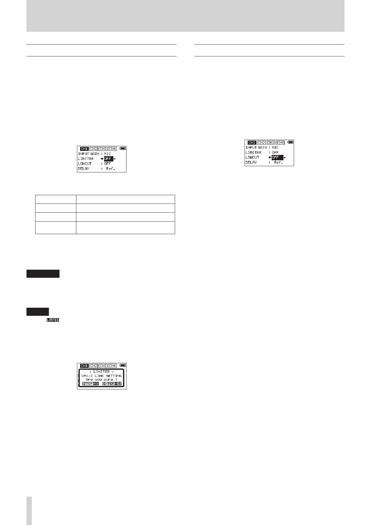 When you switch the CH1 (CH2)/CH3 (CH4) limiter setting