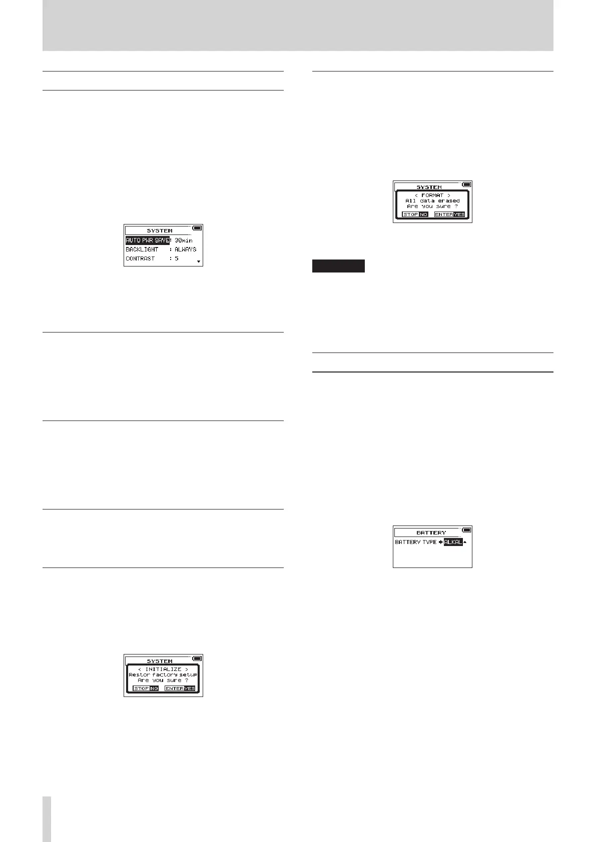 ments. You can also initialize the unit and format the SD card.