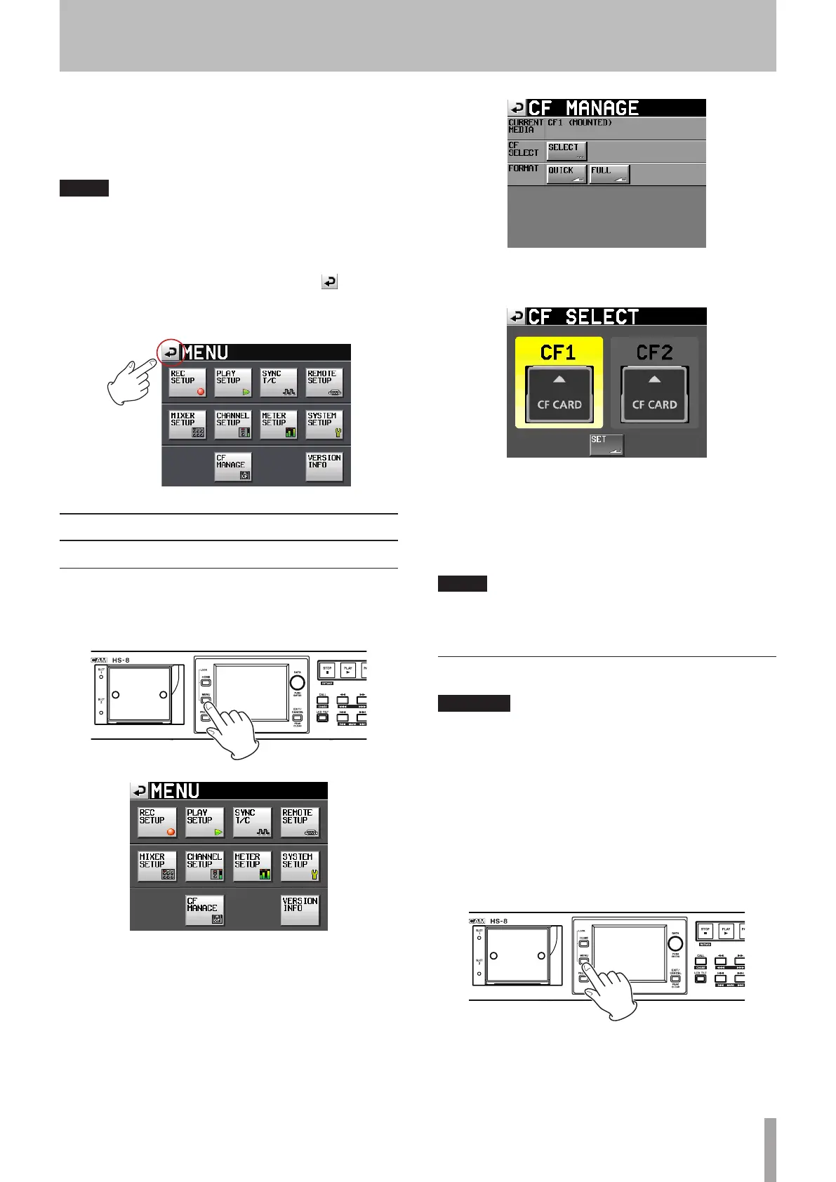 starting with step 3 in “Formatting a CF card” below.