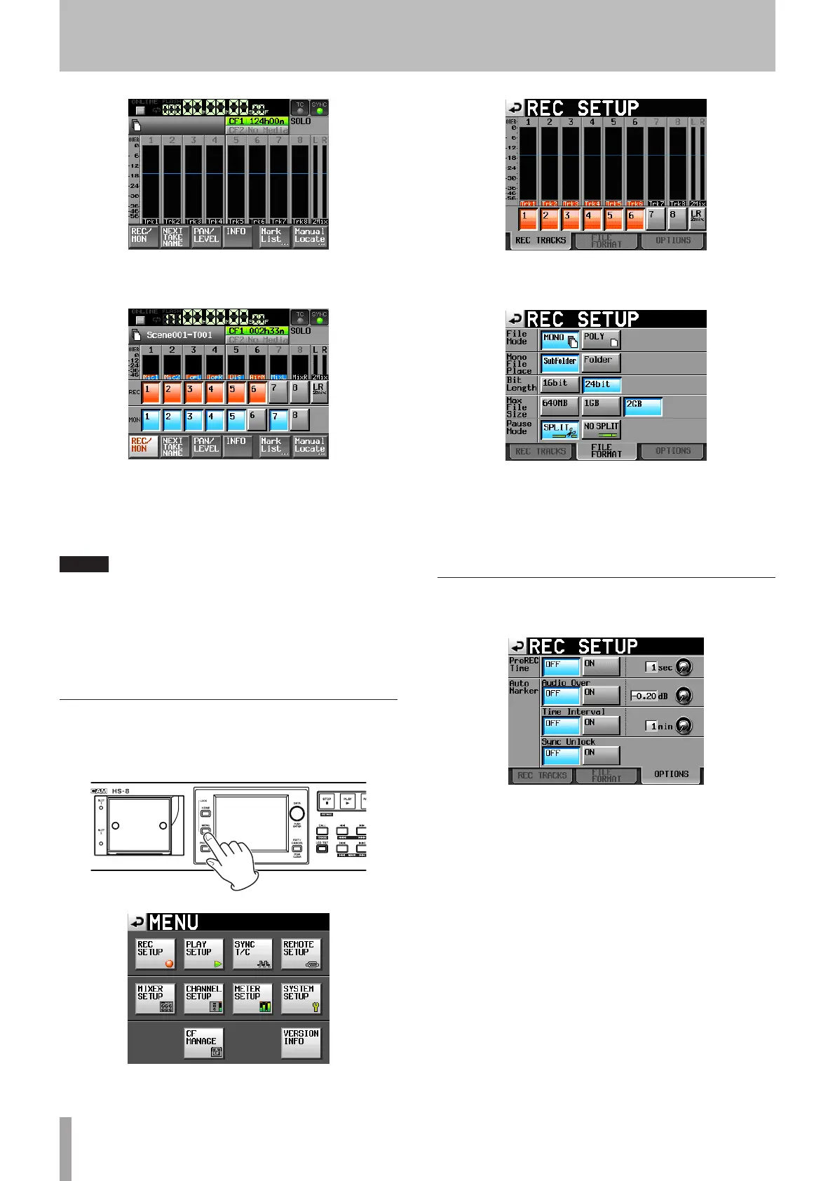 and touching the REC SETUP button.