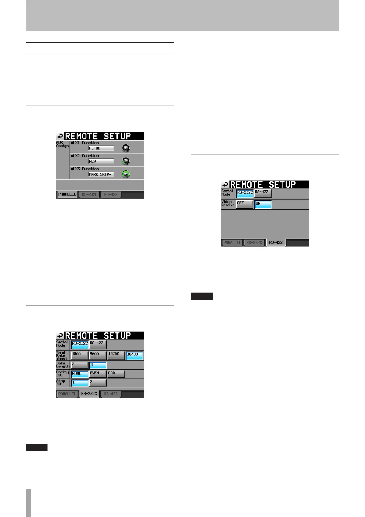 Make settings for PARALLE connector AUX 1-3 functions