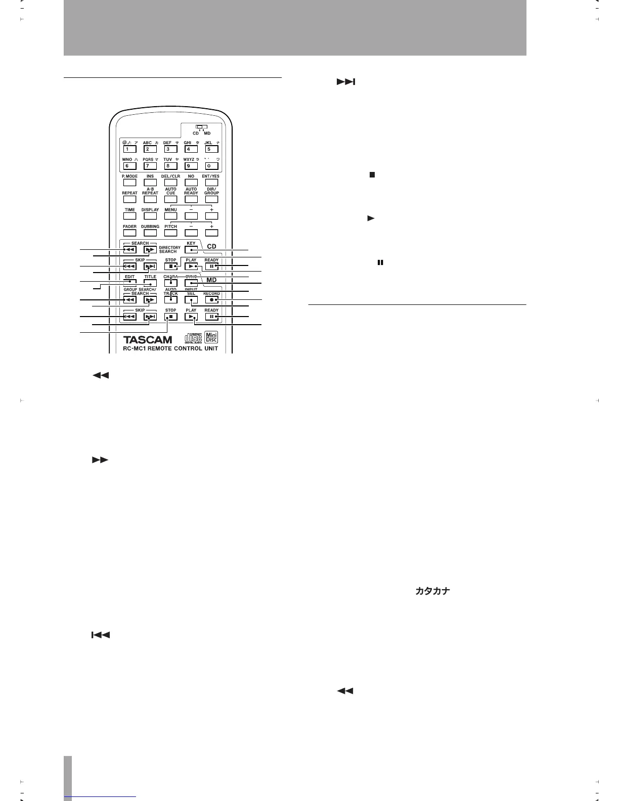 standby, press this key continuously for cue playback