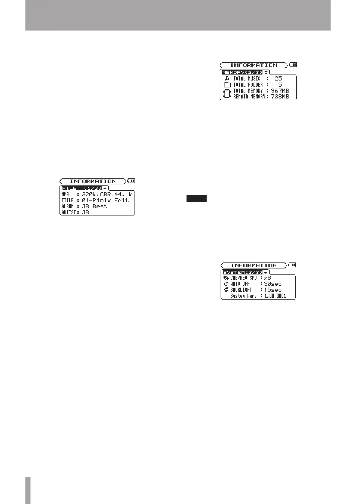 Use the INFORMATION screen to view various information
