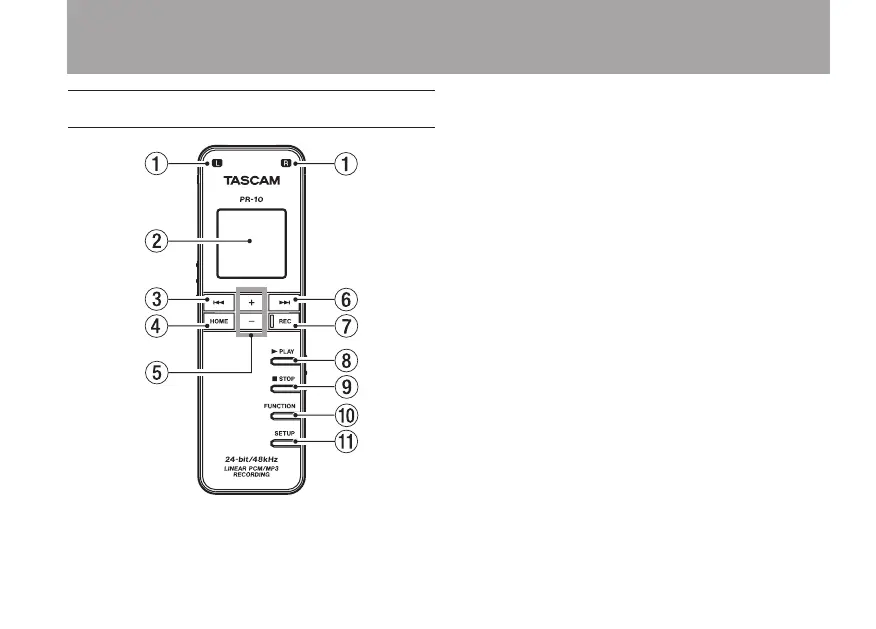 Tascam PR-10 - 2 - Names and Functions of Parts; Top Panel