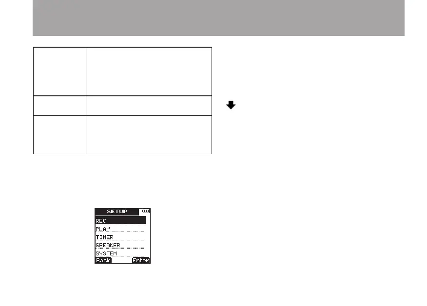 : Open the sub menu or conrm the setting.
