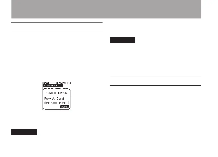 Formatting erases all data on the card.