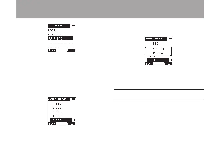 6 Use the +/– keys to set the jump back