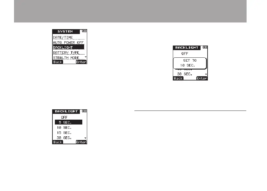 Options: OFF (backlight does not turn OFF),