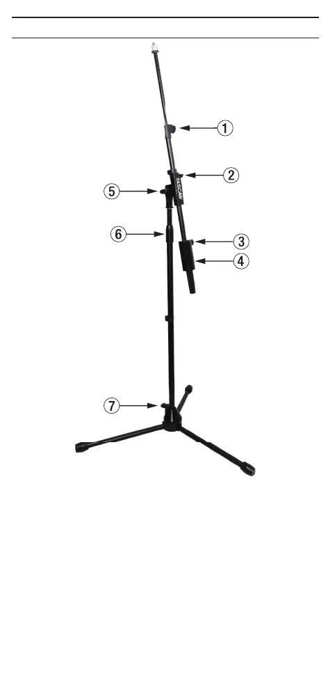 possible. Puis, serrez la vis de réglage d’angle de perche (5).