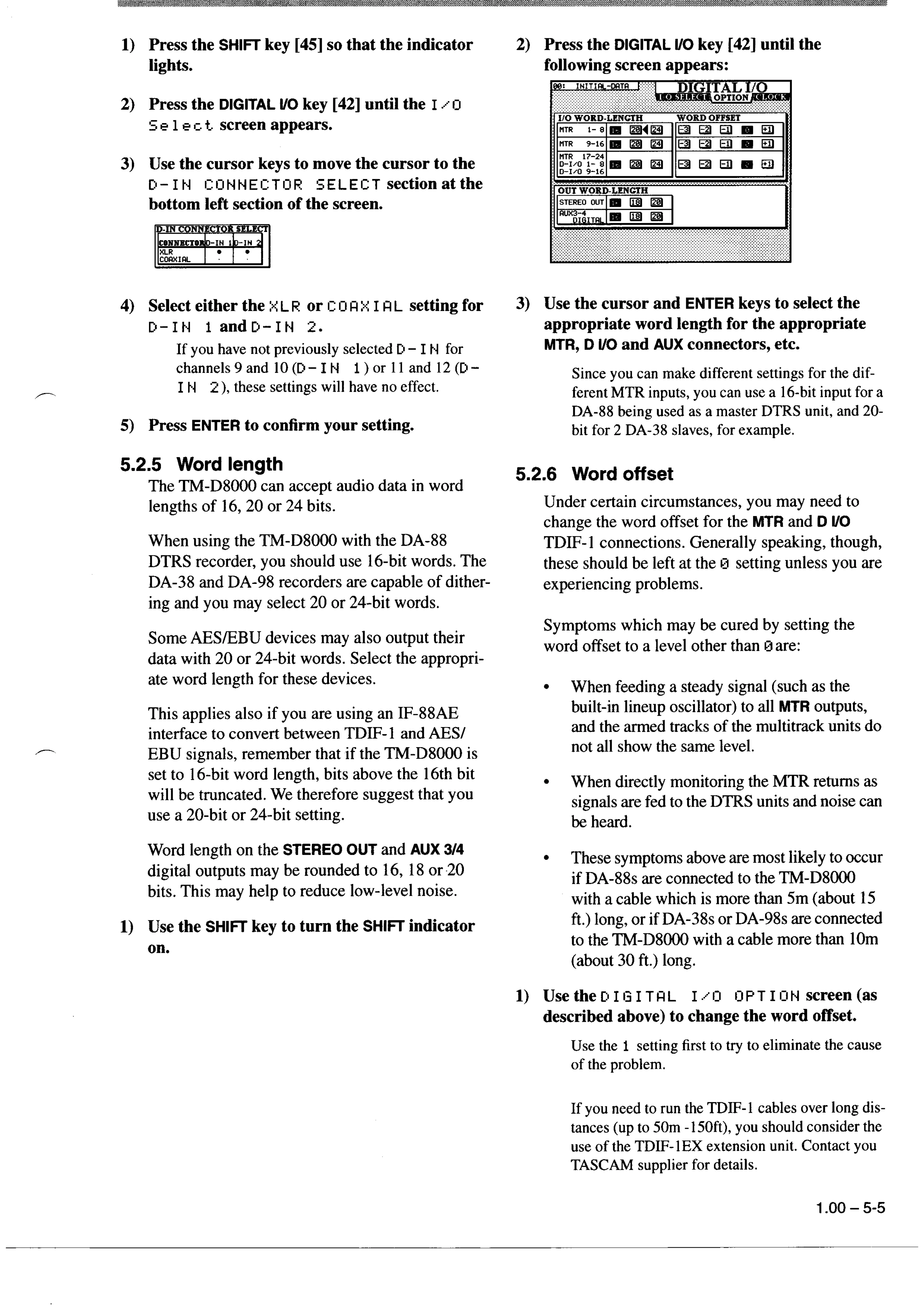 Tascam TM-D8000 - Word Length; Word Offset