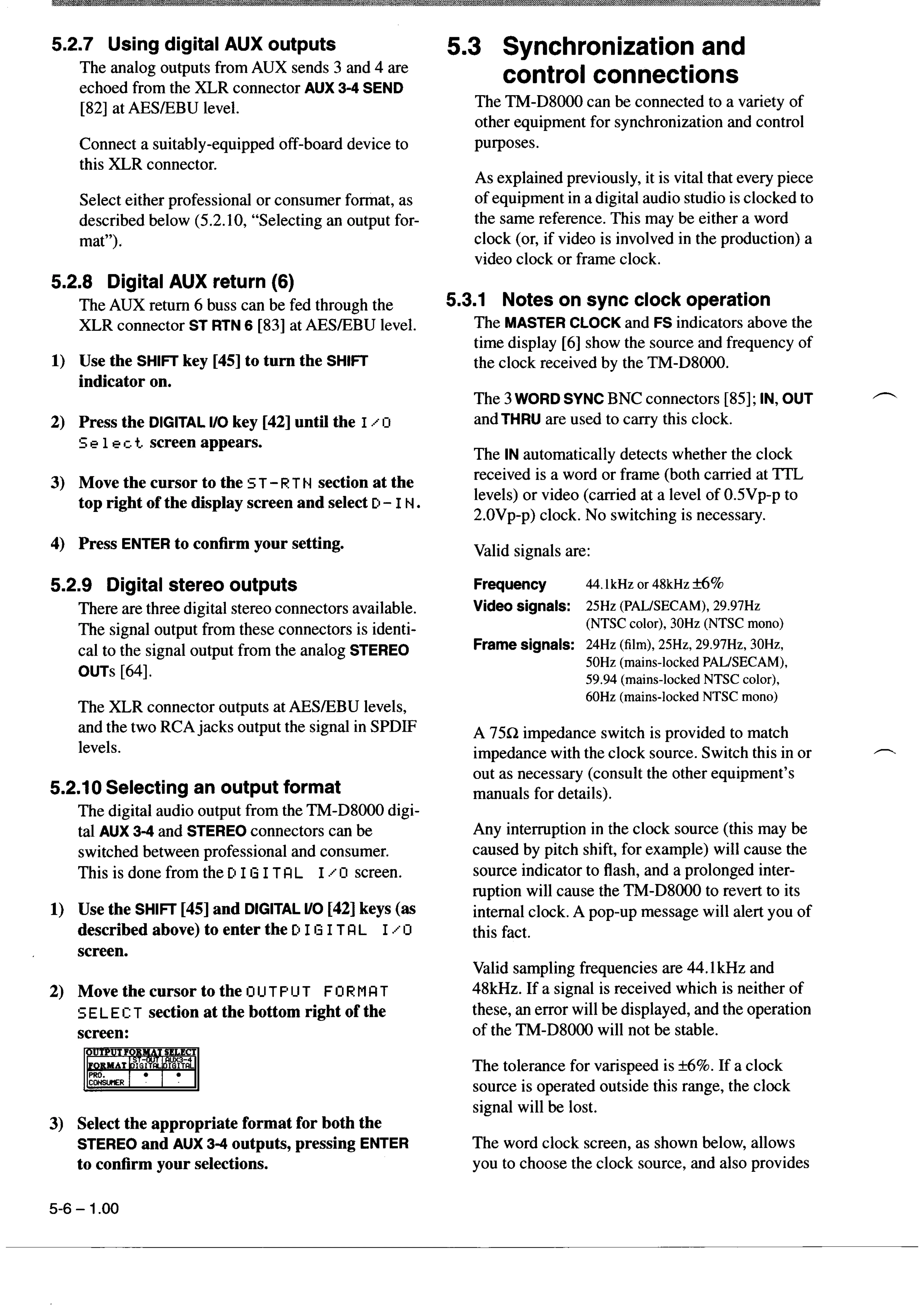 Tascam TM-D8000 - 5.3.1 Notes on sync clock operation; 5.3 Synchronization and control connections