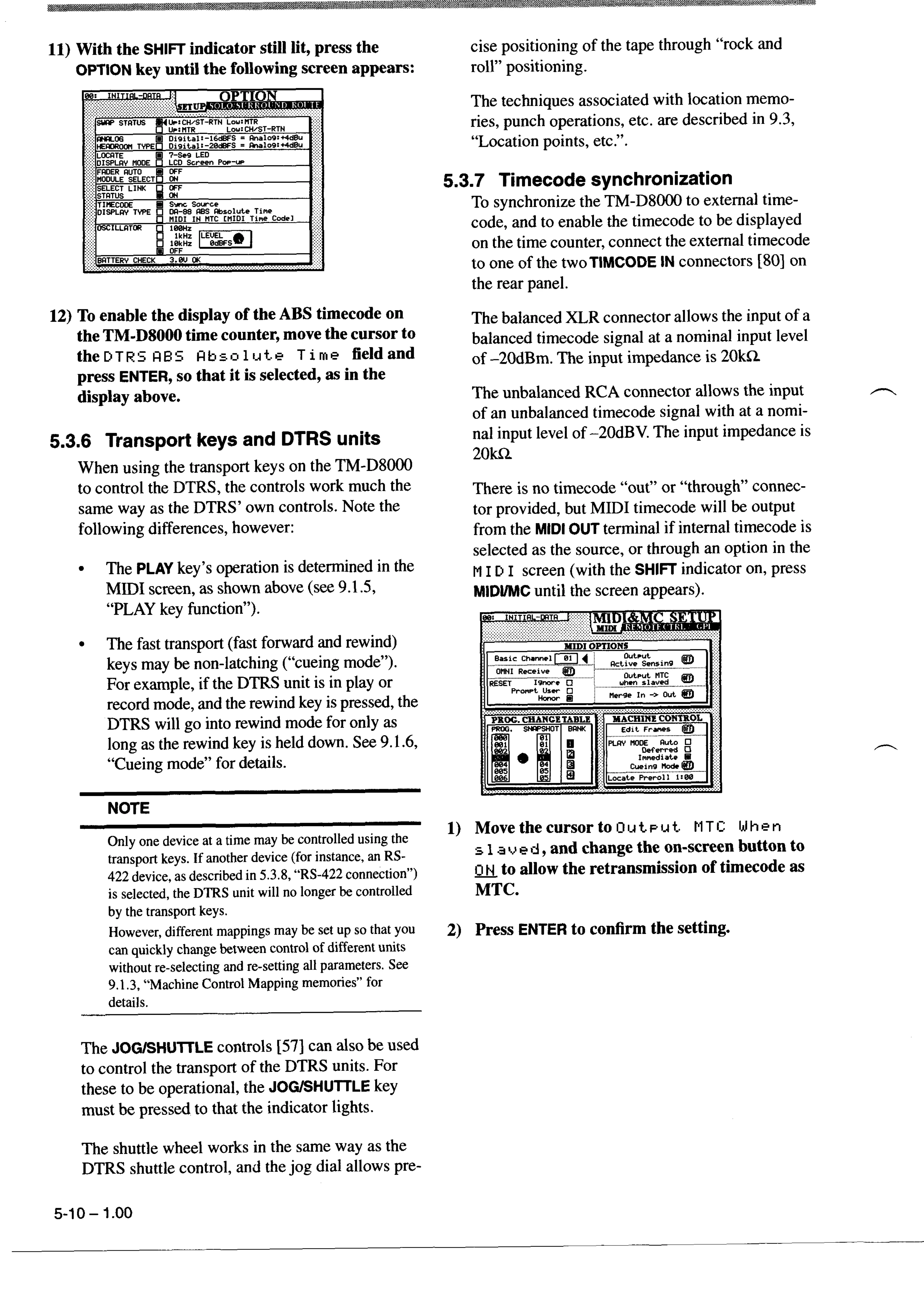 Tascam TM-D8000 - 5.3.7 Timecode synchronization
