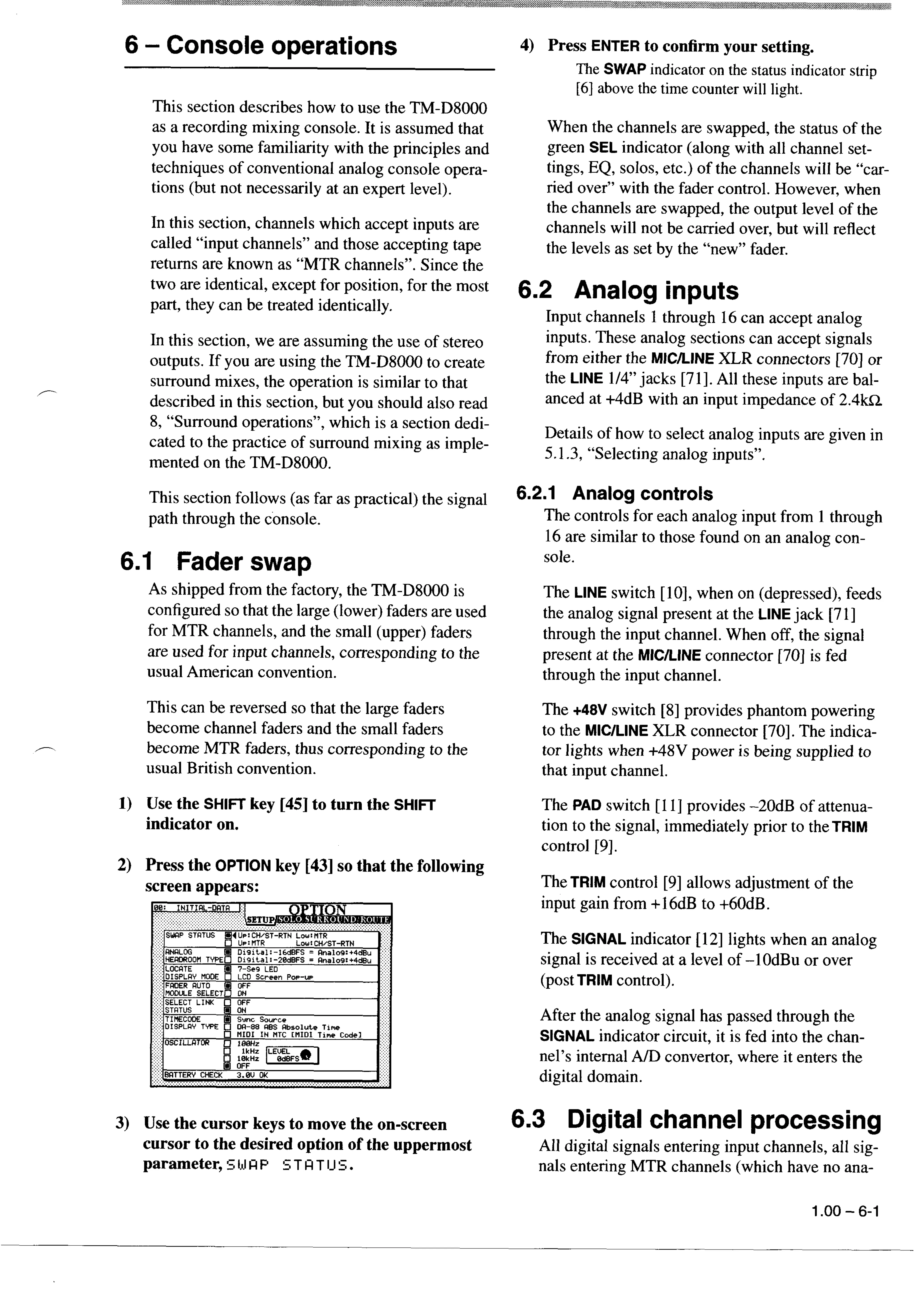 Tascam TM-D8000 - 6 - Console Operations; 6 - Console operations; 6.2 Analog inputs