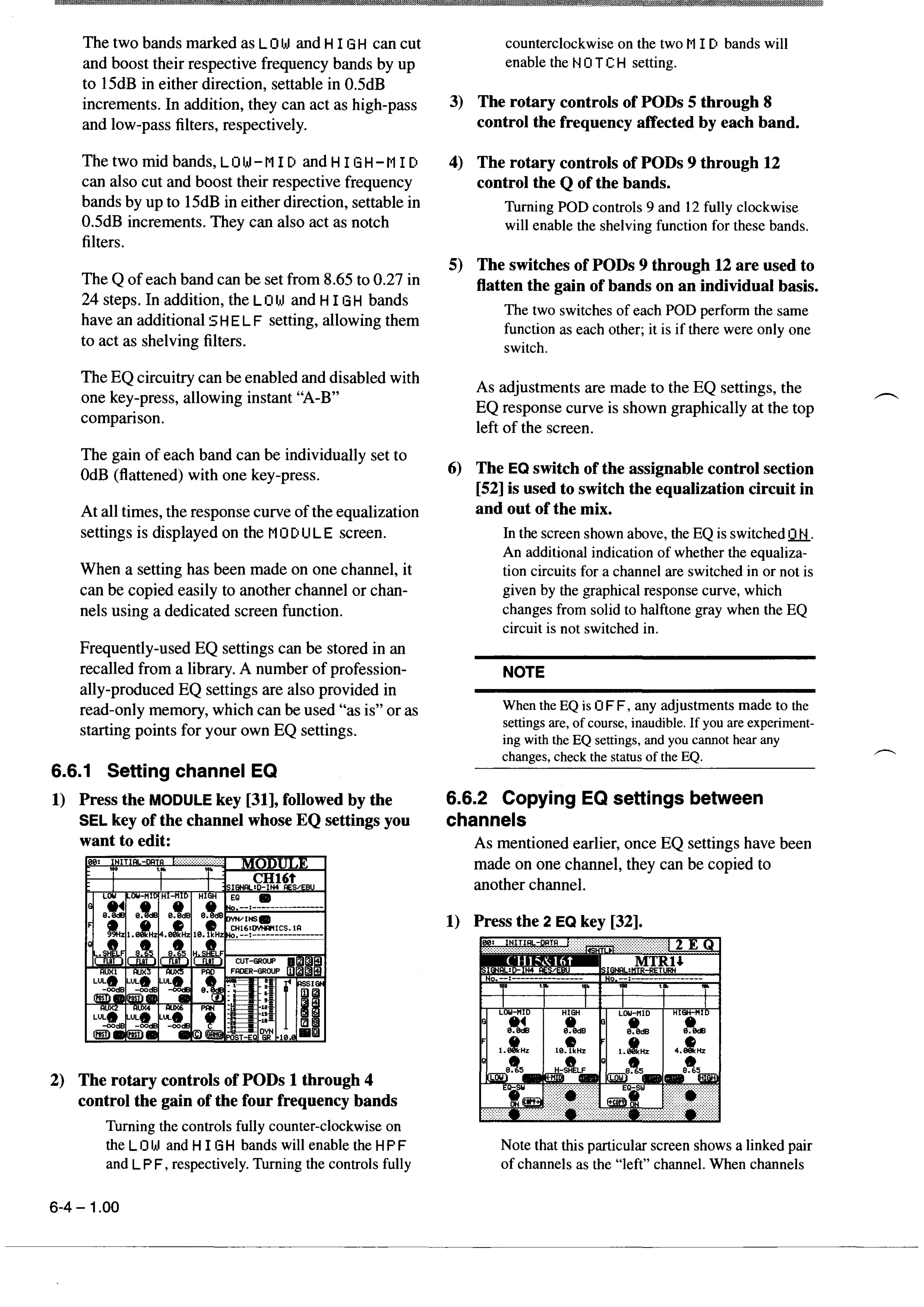 Tascam TM-D8000 - 6.6.1 Setting channel EQ