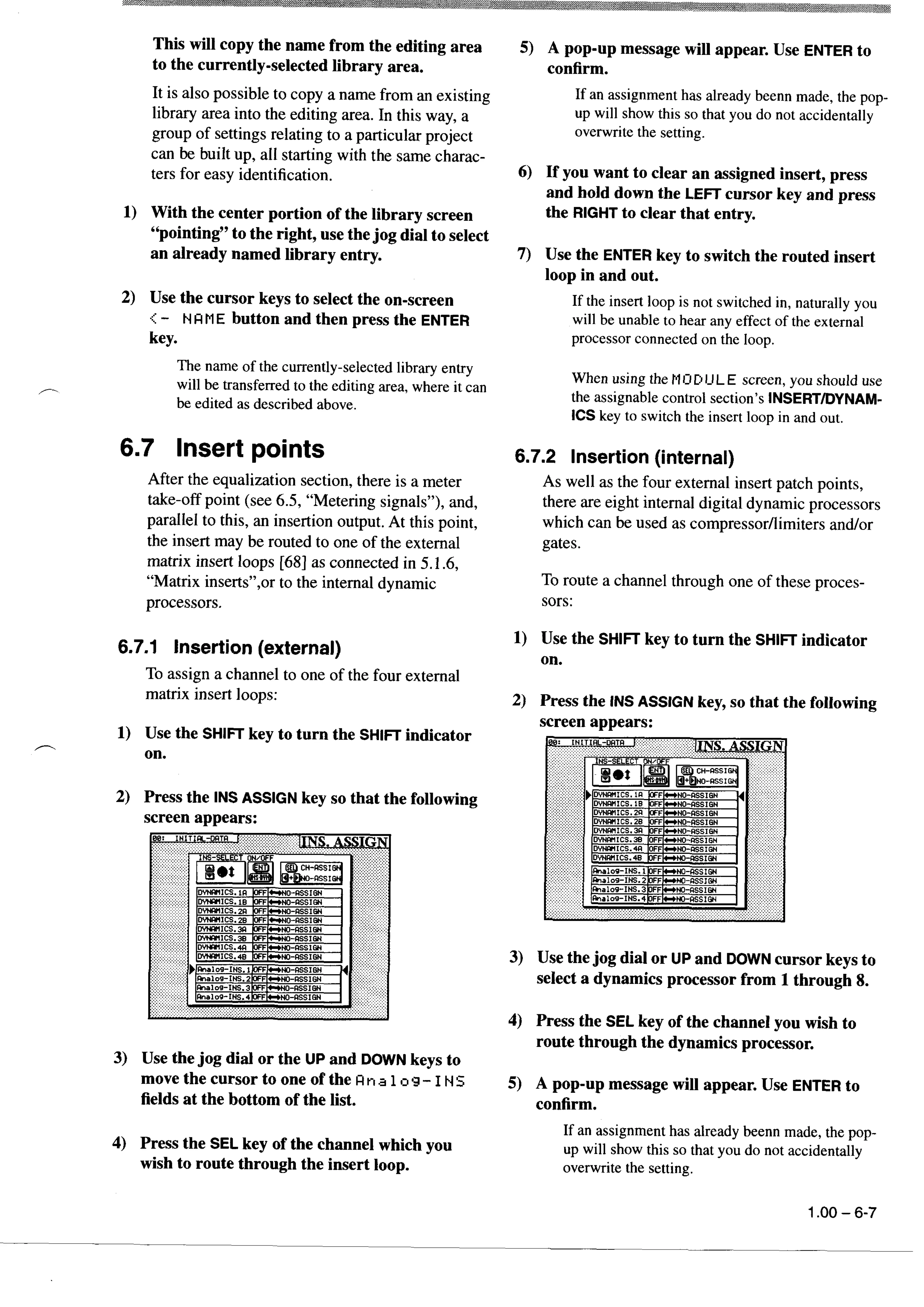 Tascam TM-D8000 - Insert Points; Insertion (External, Internal)