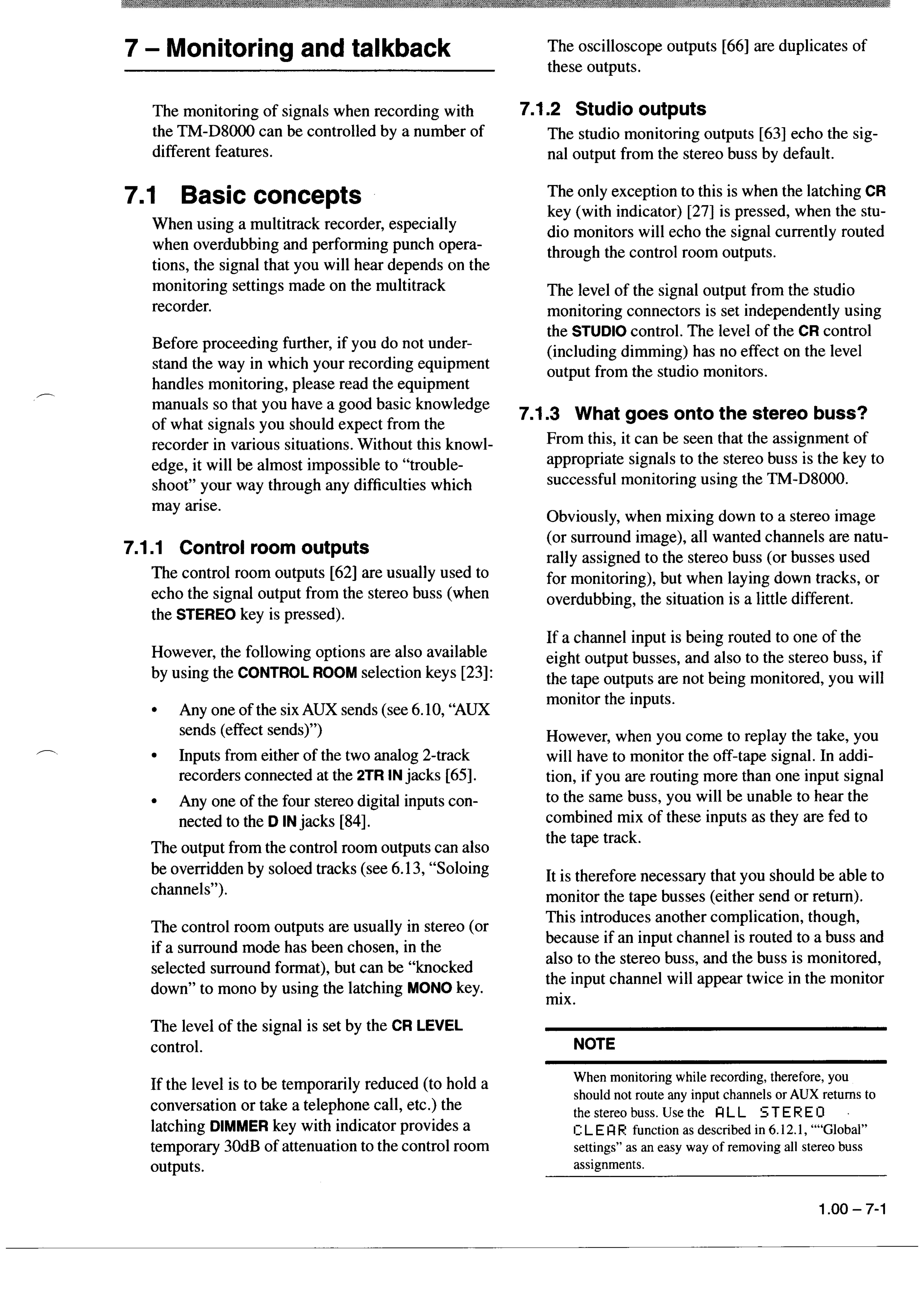Tascam TM-D8000 - 7 - Monitoring and Talkback; 7 - Monitoring and talkback
