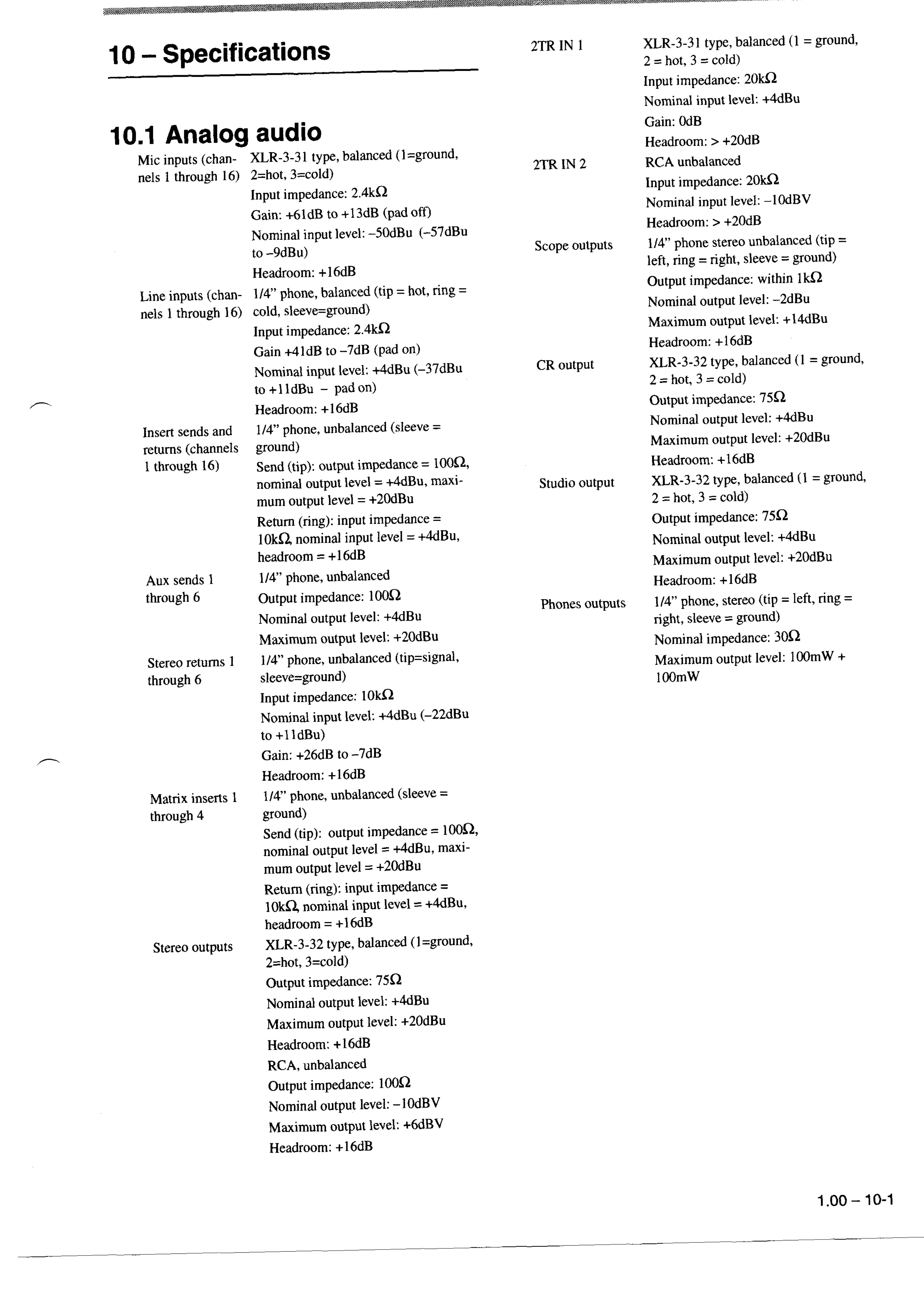 Tascam TM-D8000 - Specifications; Analog Audio