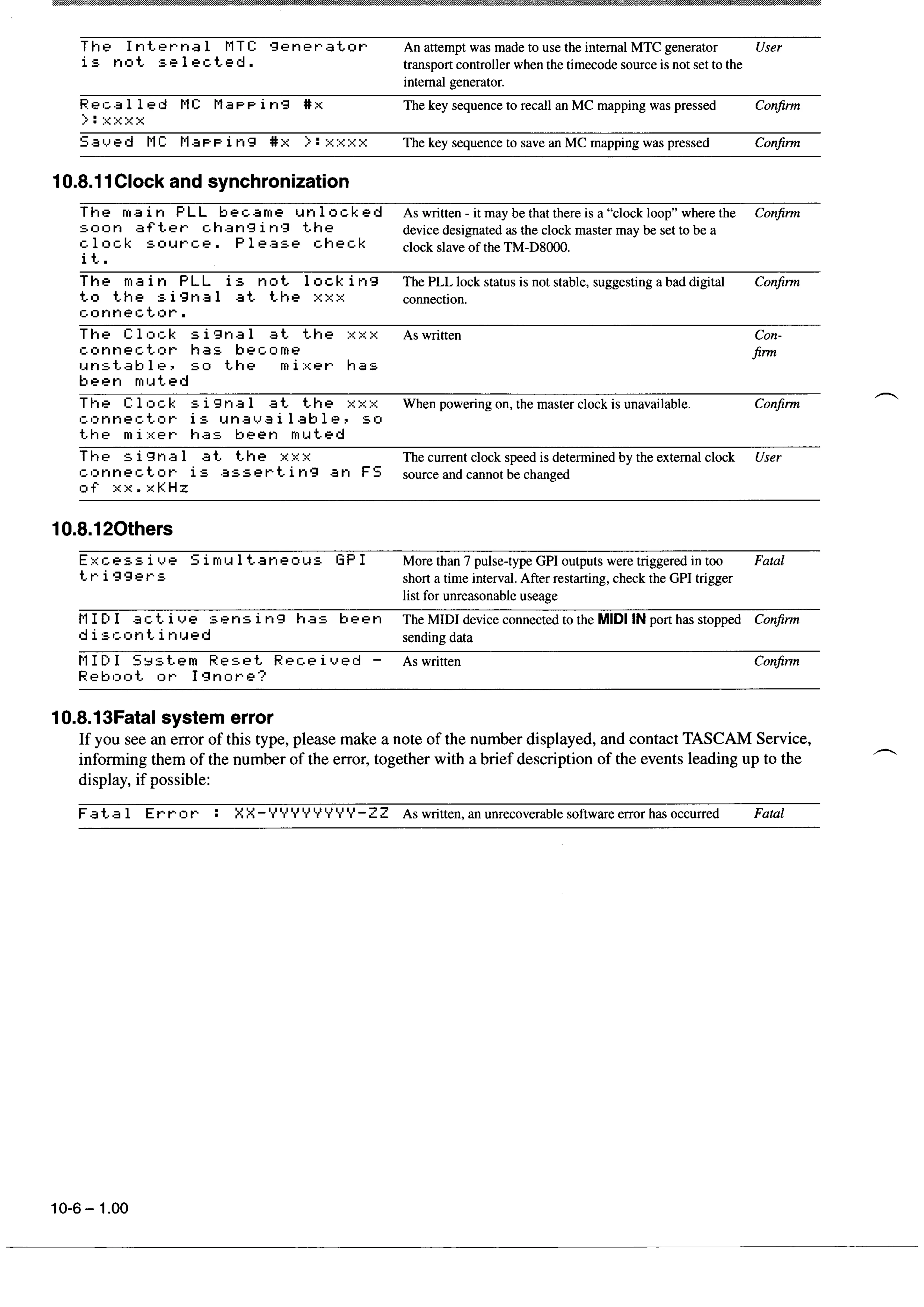 Tascam TM-D8000 - 10.8.13 Fatal system error