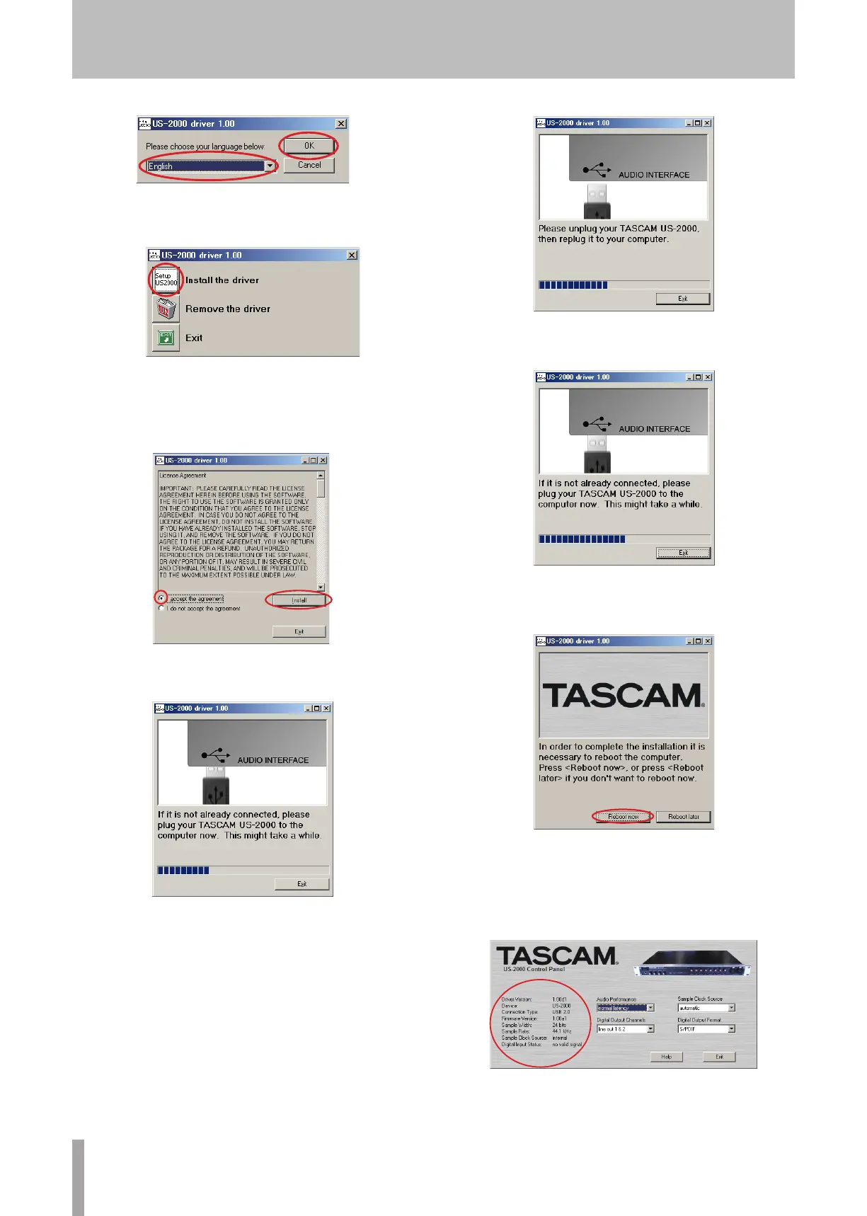 11 After the PC has restarted, open the “TASCAM