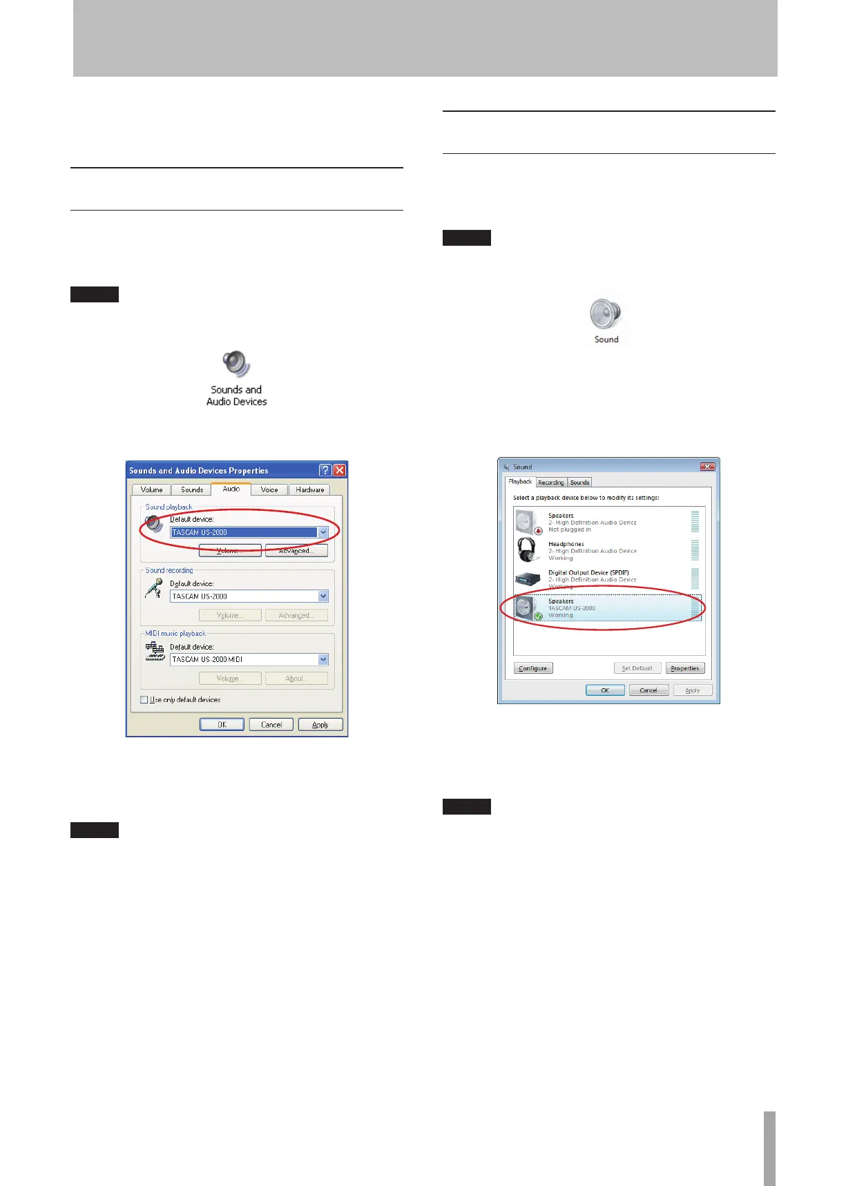for “Sound playback” to “TASCAM US-2000.”