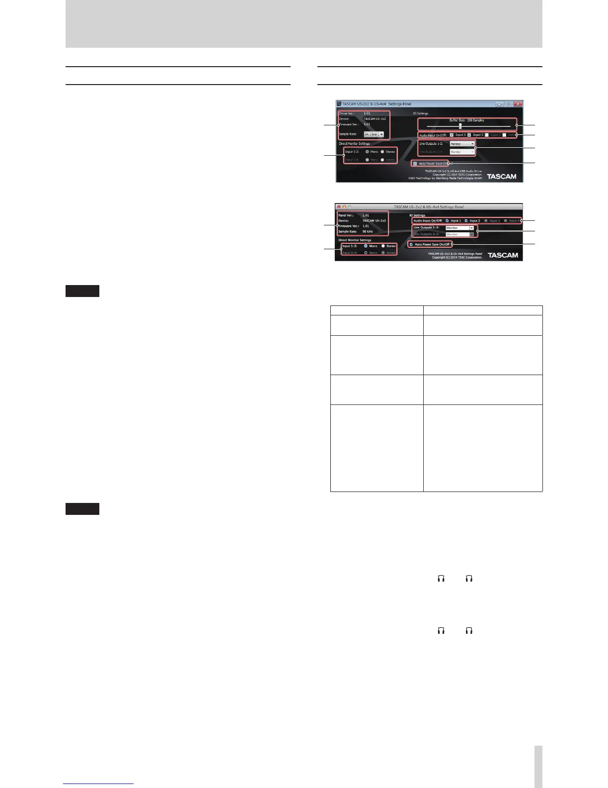 “TASCAM US-2x2 & US-4x4 Settings Panel” to open the