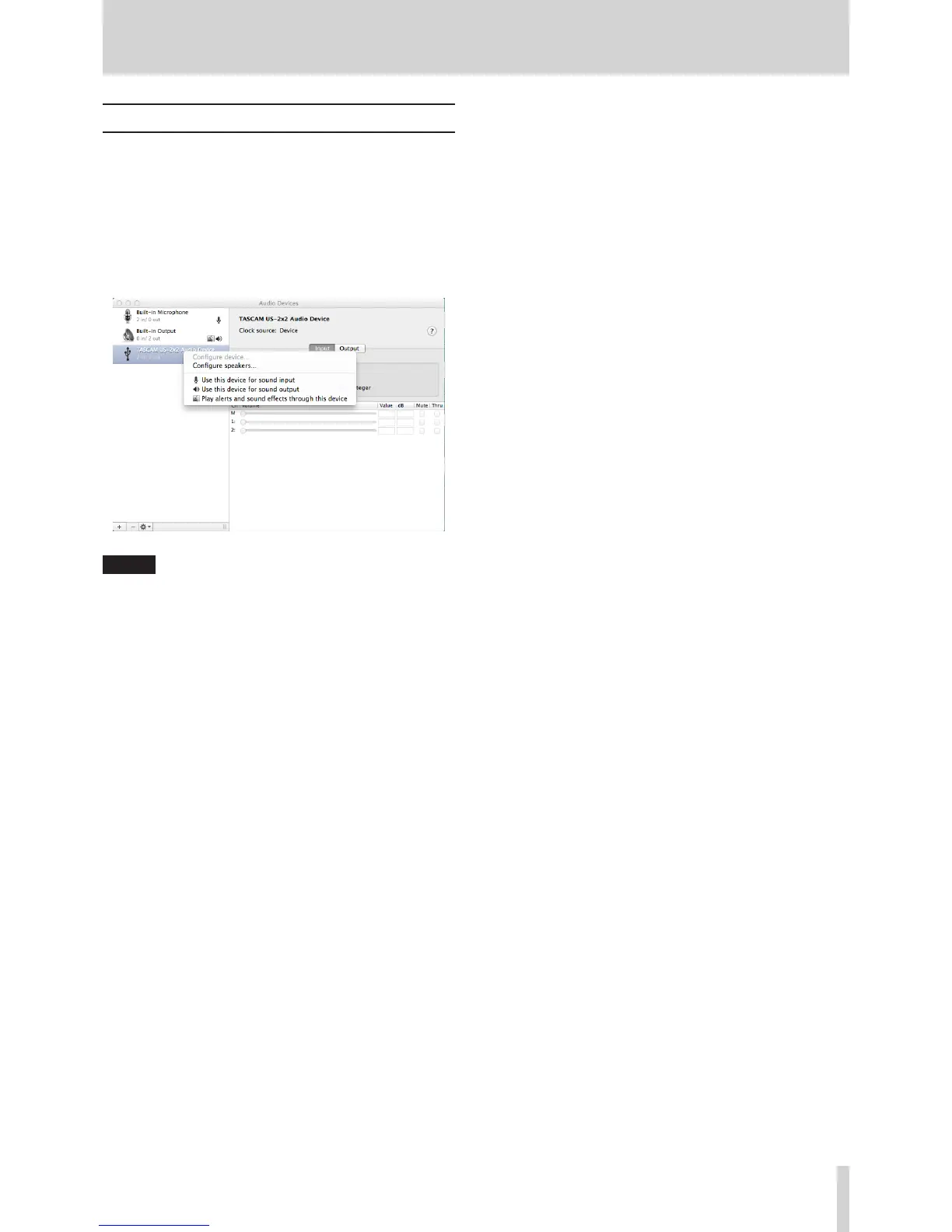 The speaker mark appears next to “TASCAM US-2x2 Audio