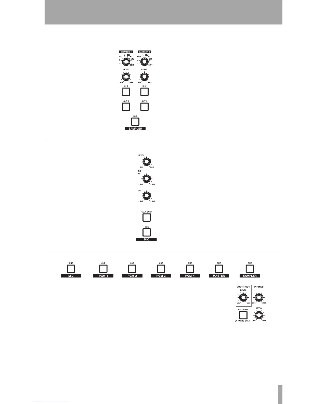 microphone, sampler, etc. for cueing and preview.